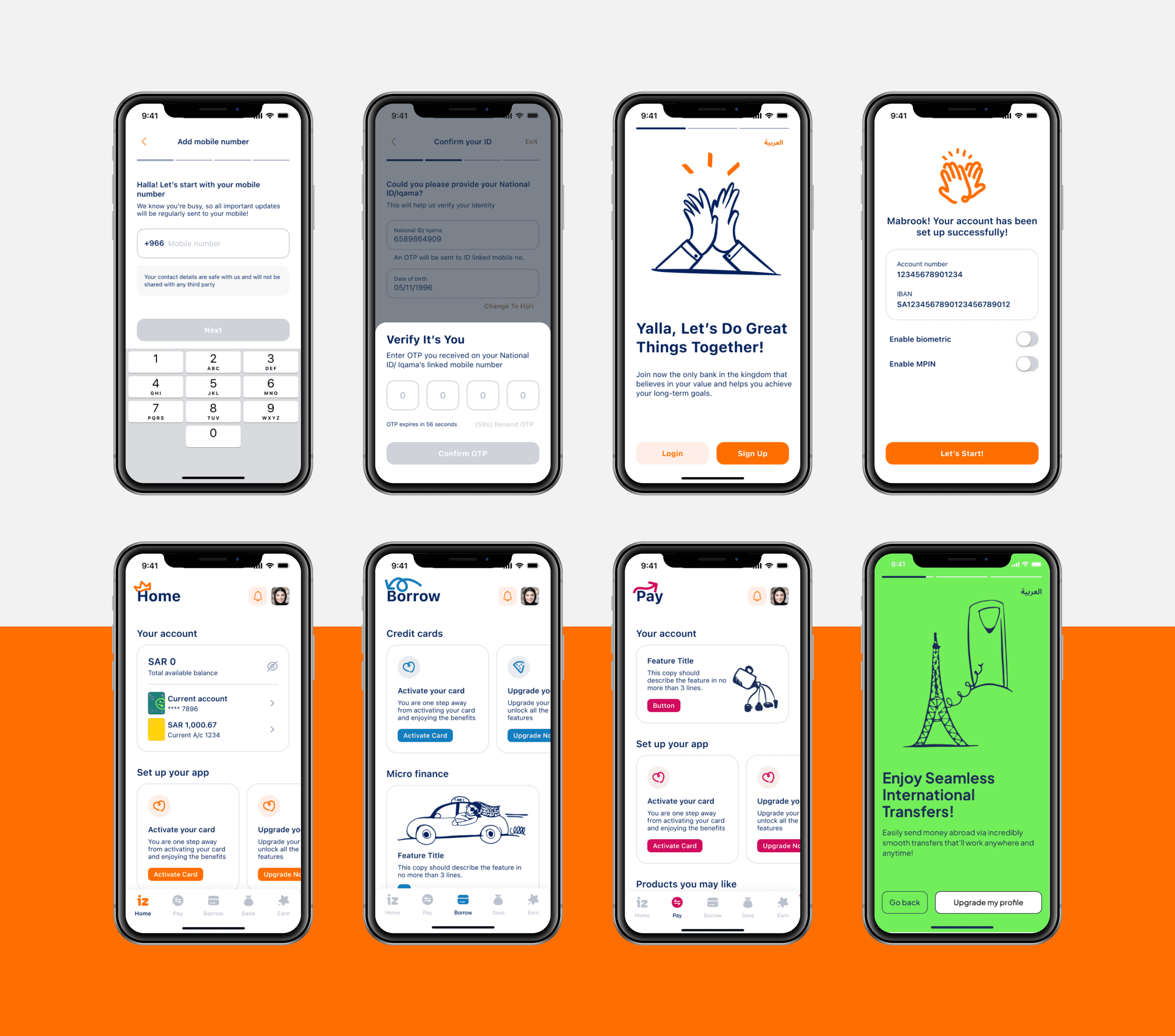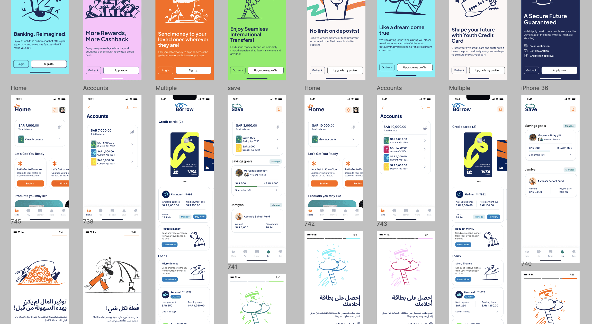 1. Conceptualized the UX for Onboarding, Account, and Card Management journeys within the bank's mobile banking application.