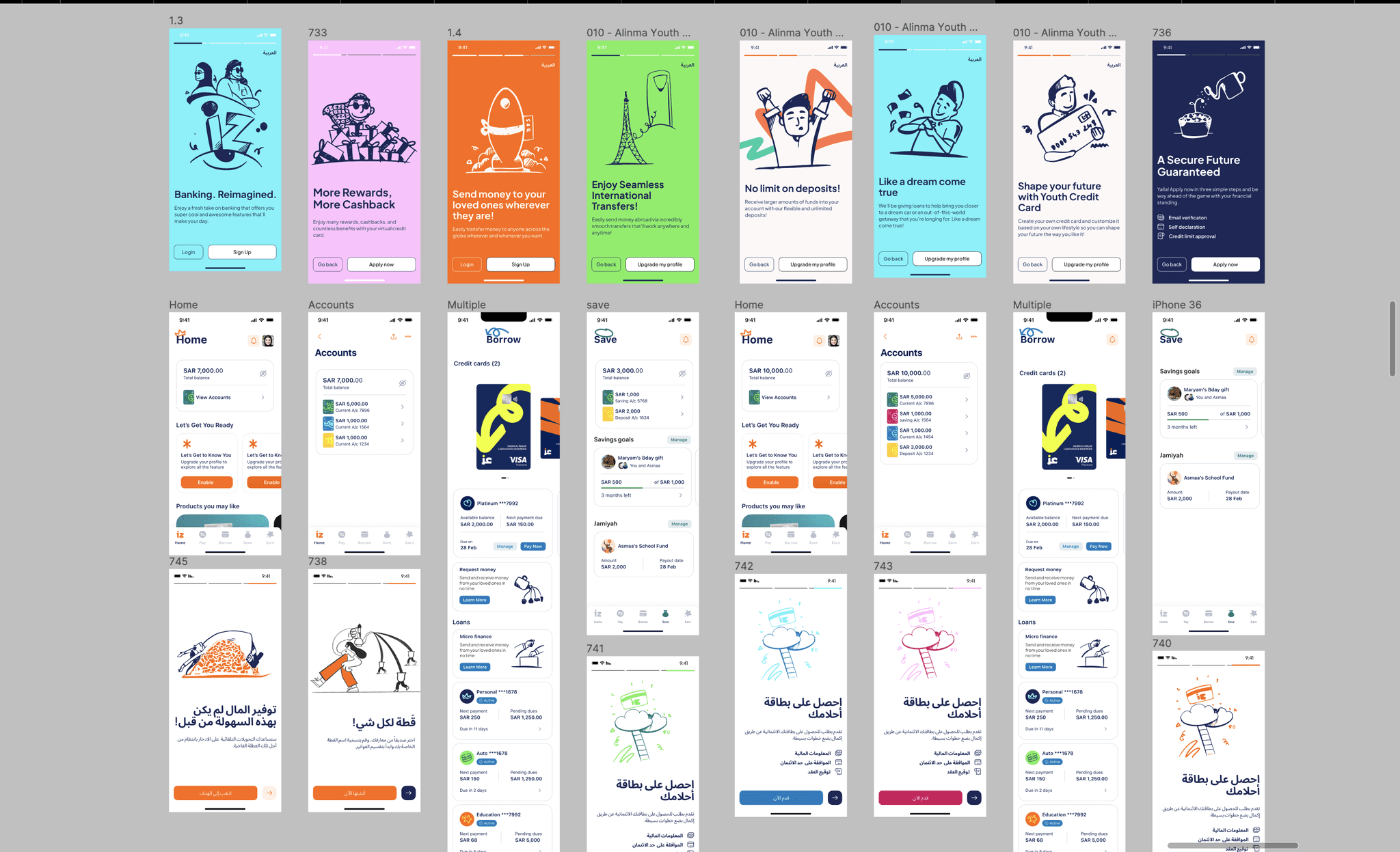 1. Conceptualized the UX for Onboarding, Account, and Card Management journeys within the bank's mobile banking application.